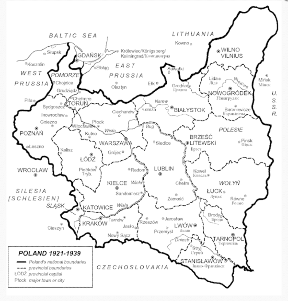 The new state stretched to the east to include the provinces of Nowogródek, Polesie, Wołyń, Tarnopol, and Stanisławów. The major cities were Wilno (Vilnius), Stanisławów (Ivano-Frankivsk), Lwów (Lviv) and Brześć (Brest). These areas became known as Kresy – Borderlands. The area encompassed a population of five million Ukrainians and 150,000 Belarusians 80,000 Russians. In one estimate, only 15% of the population was ethnically Polish. Yet there were 2 million Poles left outside the new borders.